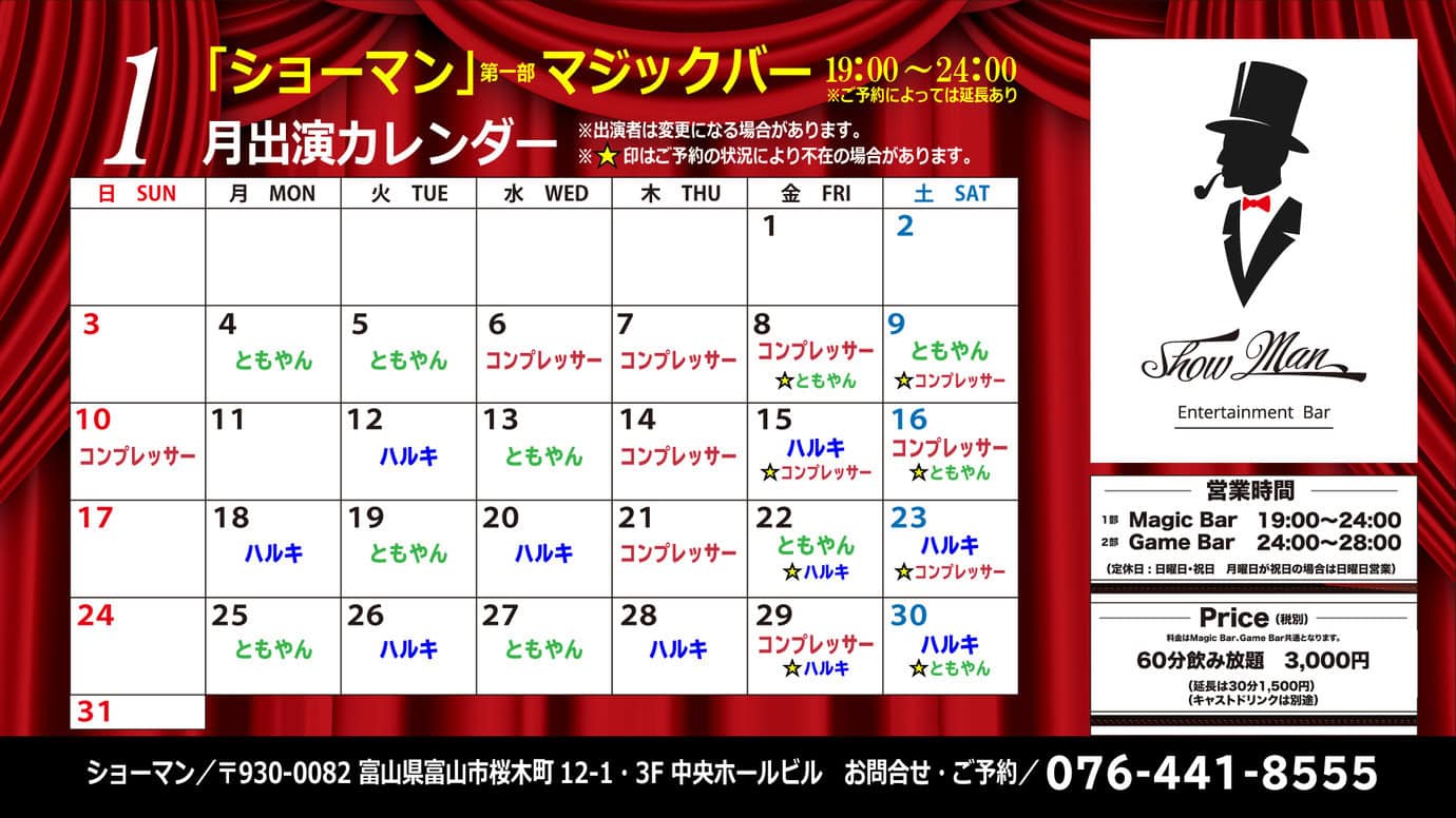 エンターテイメントバー・ショーマンは30日で今年の営業を終えました!たくさんのご来店、ありがとうございましたーー!来年は1月4日からスタートです!