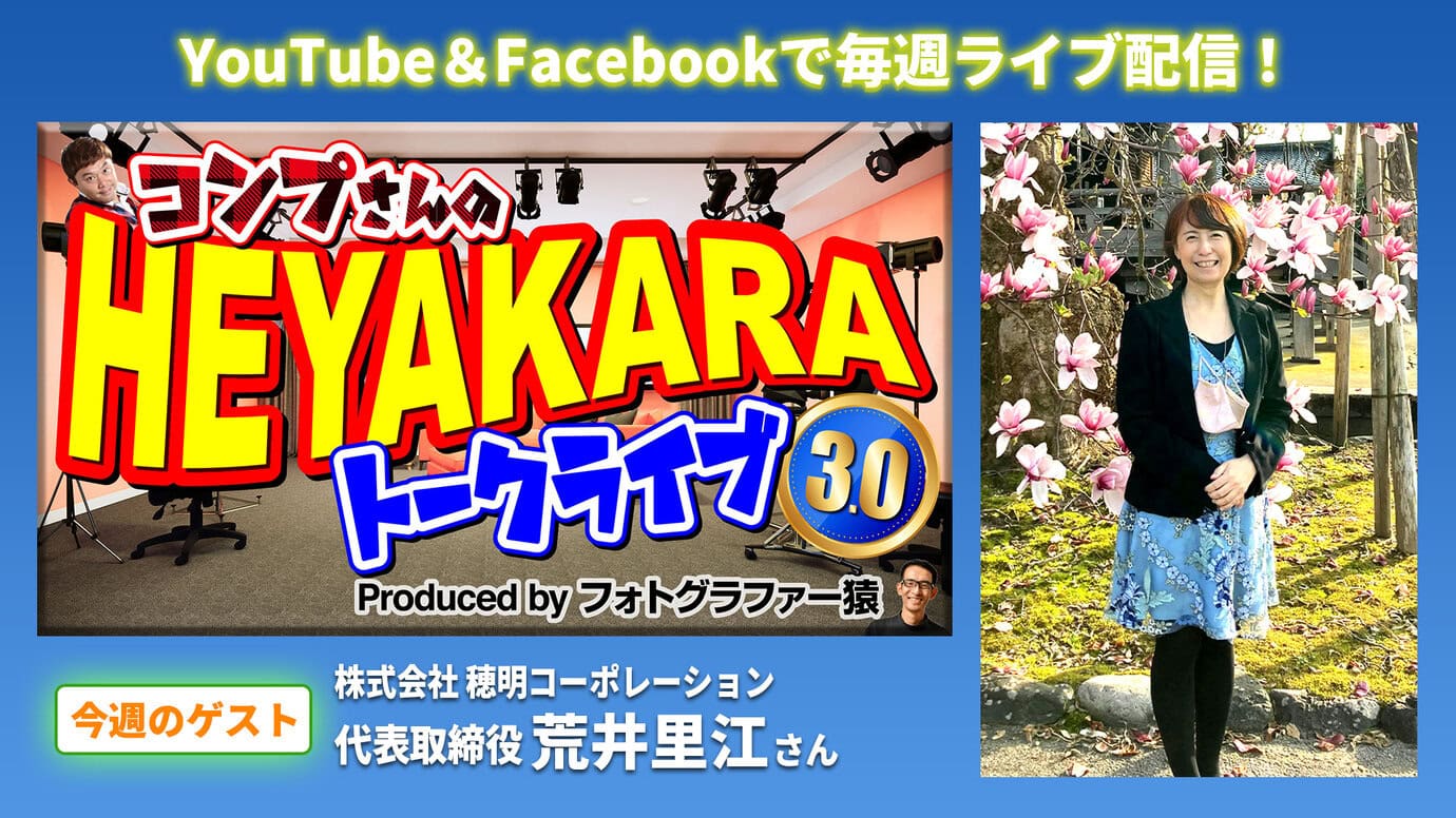 7/13日(火)『コンプさんのHEYAKARAトークライブ3.0(vol.61)』のゲストは、株式会社穂明コーポレーション 代表取締役 荒井里江さんが登場!