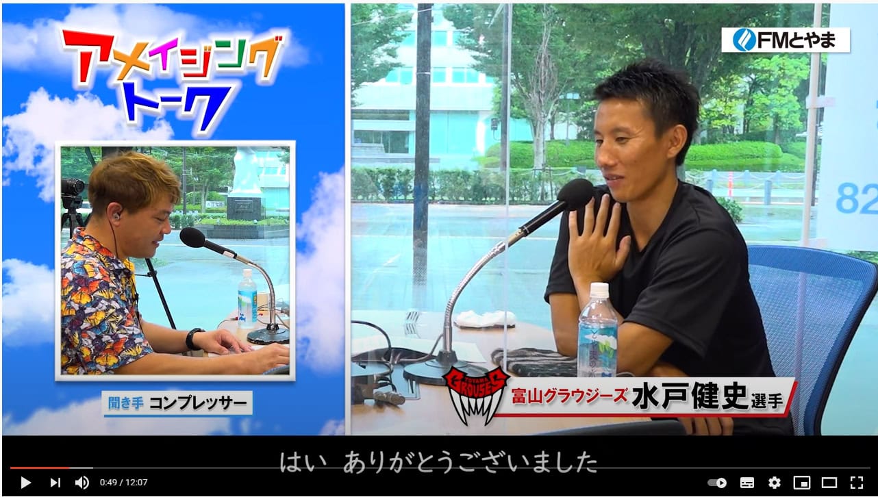 で、9月3日には、富山市のアメイジングトヤマのHPにも1本動画を制作、水戸選手とのフリースロー対決や、お人柄に迫るアメイジングトーク(ラジオとは内容が違います!)などを10分程度にまとめましたよ~☆