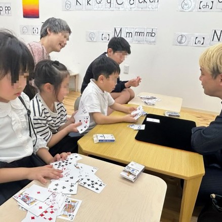 今回も子どもたちとマジックを楽しみました!特に盛り上がったのは、トランプを使った言葉遊びです!これは単純なものですが、子どもたちに大人気でした!