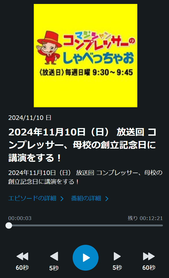 ラジオブログ:FMとやま コンプレッサーのしゃべっちゃお 11/10放送回