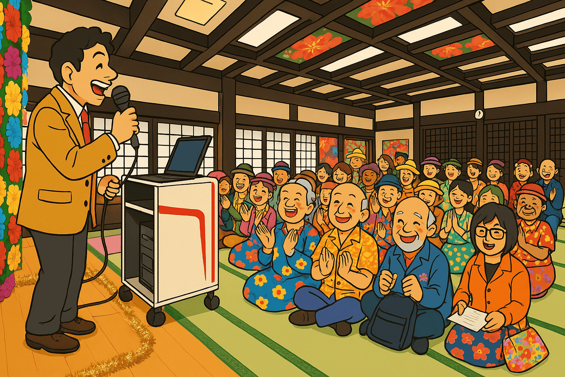 皆さん、こんにちは!マジシャン コンプレッサーです!今回は地元のゆーゆうランド・花椿でのカラオケ大会の司会として参加してきましたので、その様子をお伝えします!