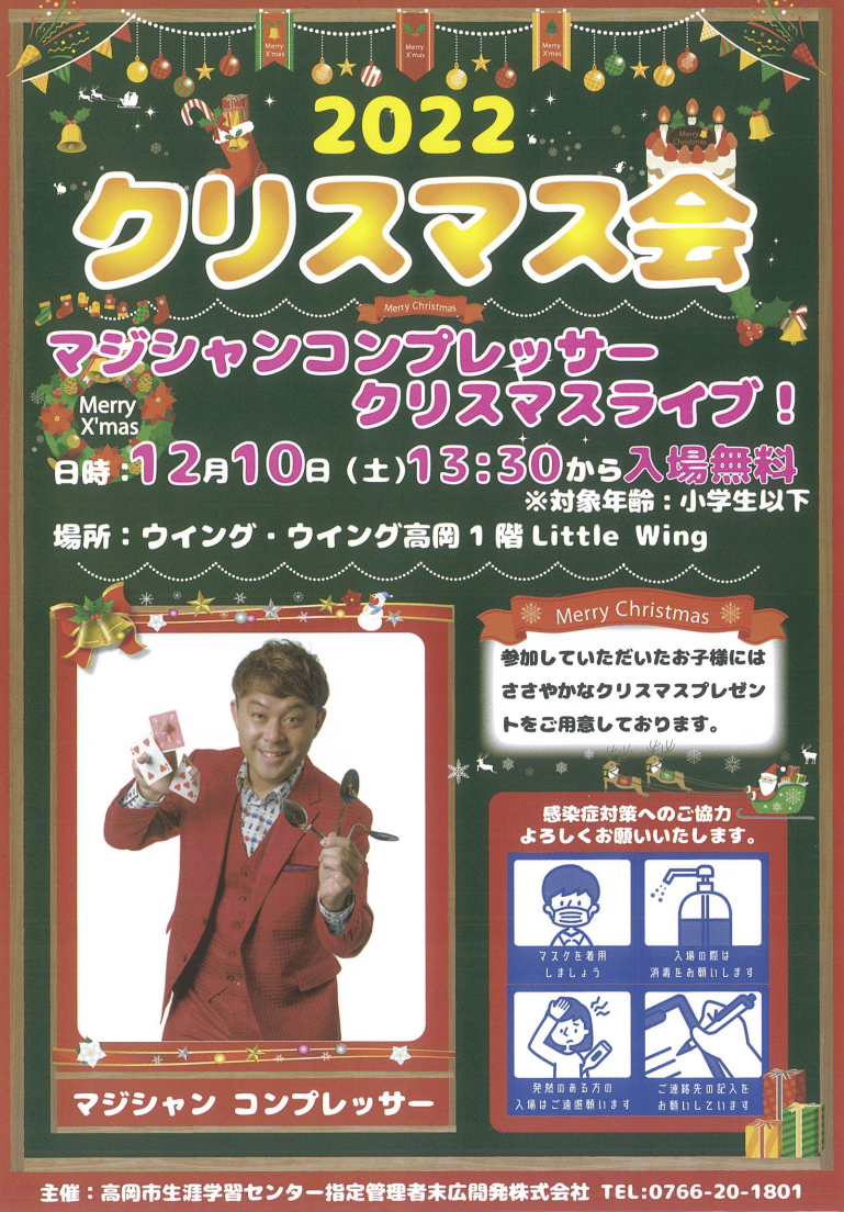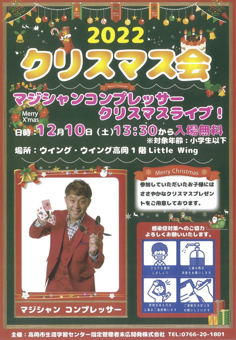 12月10日(土)ウイング・ウイング 2022クリスマス会でマジックショーを開催!皆様のご来場お待ちしております!