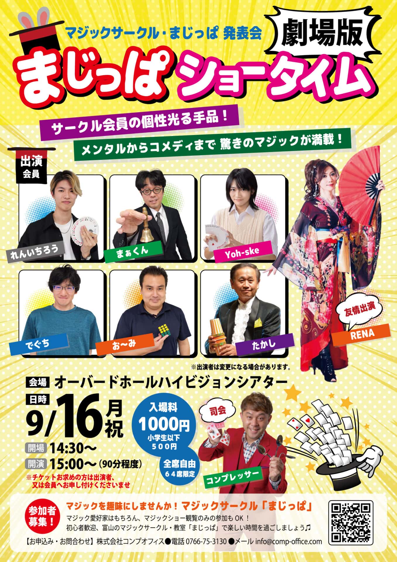 9/16 マジックサークル発表会「まじっぱショータイム 劇場版」開催!