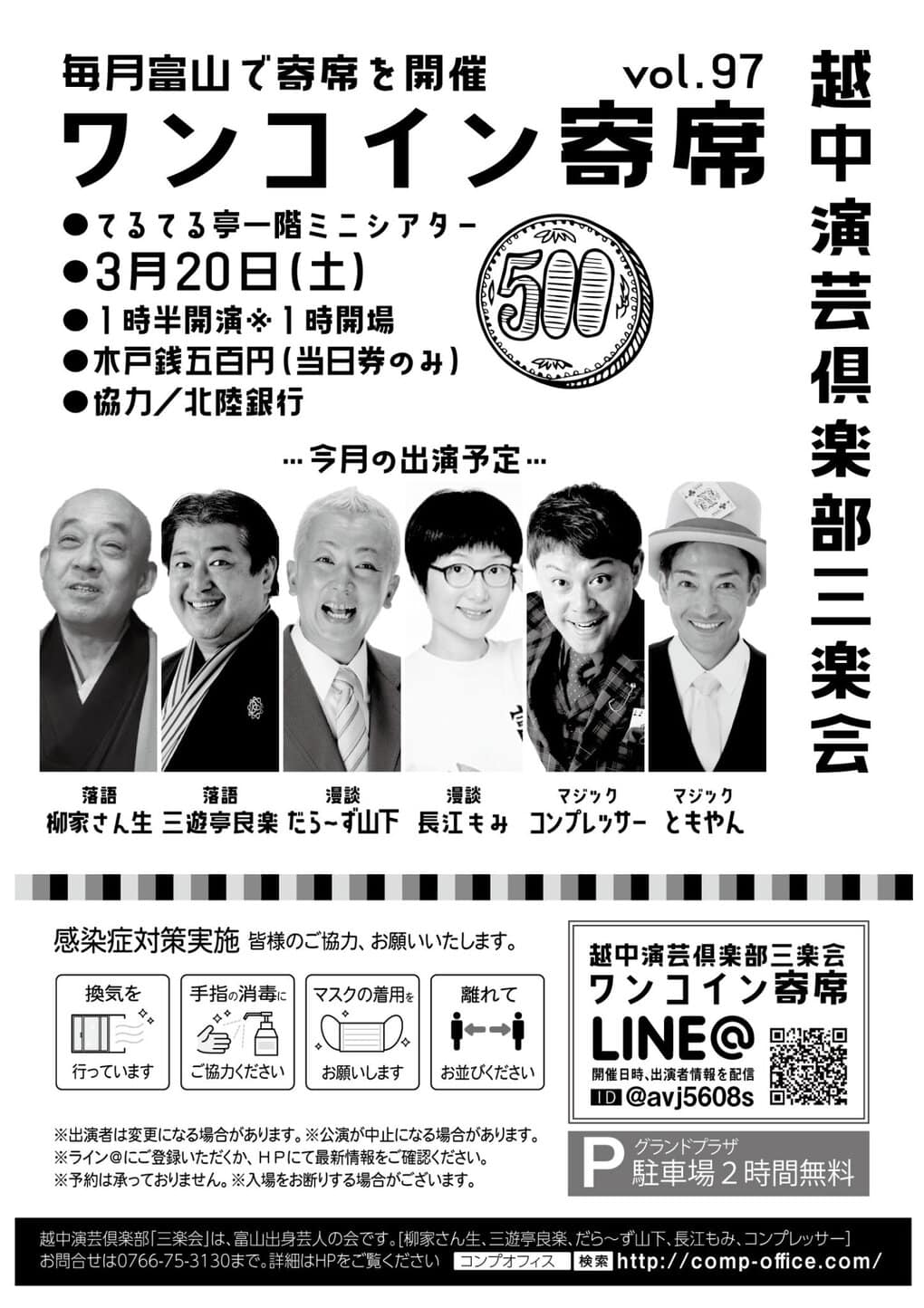 越中演芸倶楽部三楽会ワンコイン寄席を開催!来月は4月17日土曜日の開催です!