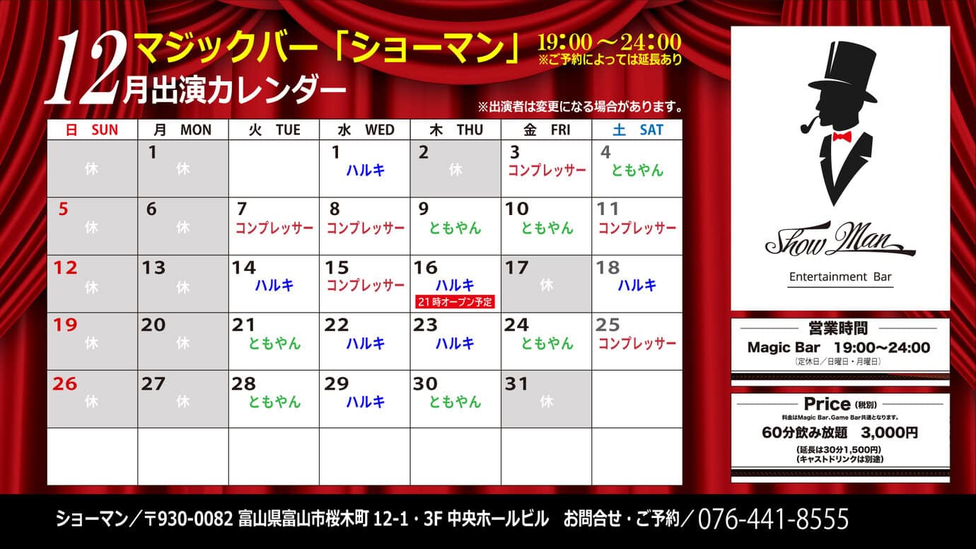 マジックバーショーマン!12月も絶好調で営業してまーす♪友人知人、お世話になっている皆様、そしてご新規さんにリピーターさん、オープンからクローズまでノンストップでマジック☆感謝ですー!