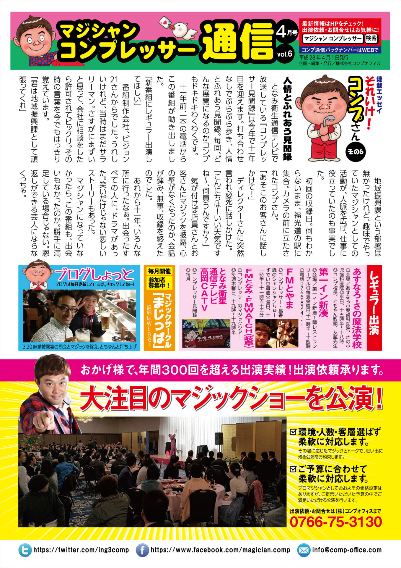 コンプレッサー通信 vol.6/2016年4月号 2016年4月1日 最終更新日時 : 2020年7月11日 コンプさん 【おもてダウンロード/PDF】【うらダウンロード/PDF】 FacebookXBlueskyCopy